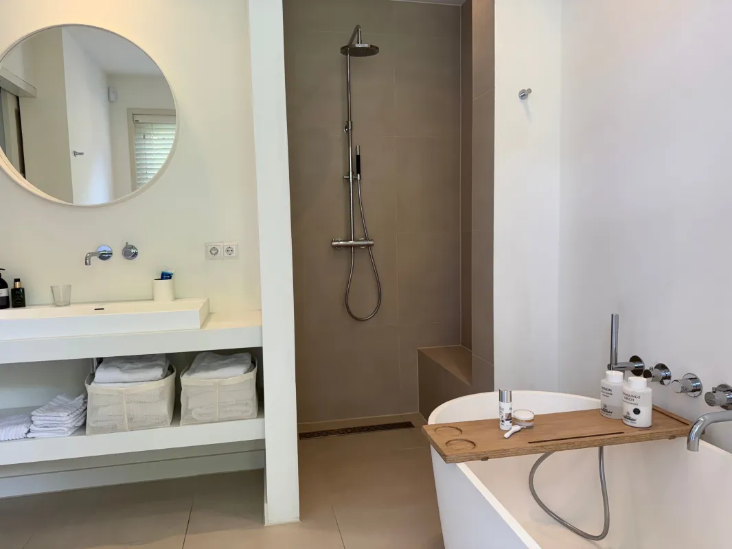 In dieser Ferienvilla findest du eine ruhige und friedliche Atmosphäre und sie ist daher ein wunderbarer Ort, um in Luxus und Komfort zu verweilen. Die Fenster sind groß und lassen viel natürliches Licht herein, was ein Gefühl der Verbindung mit dem Wald entstehen lässt. Die Villa ist mit allen modernen Annehmlichkeiten ausgestattet, die du benötigst, wie eine voll ausgestattete Küche, komfortable Schlafzimmer, von denen jedes ein eigenes Badezimmer hat, und eine große Terrasse mit Außendusche.